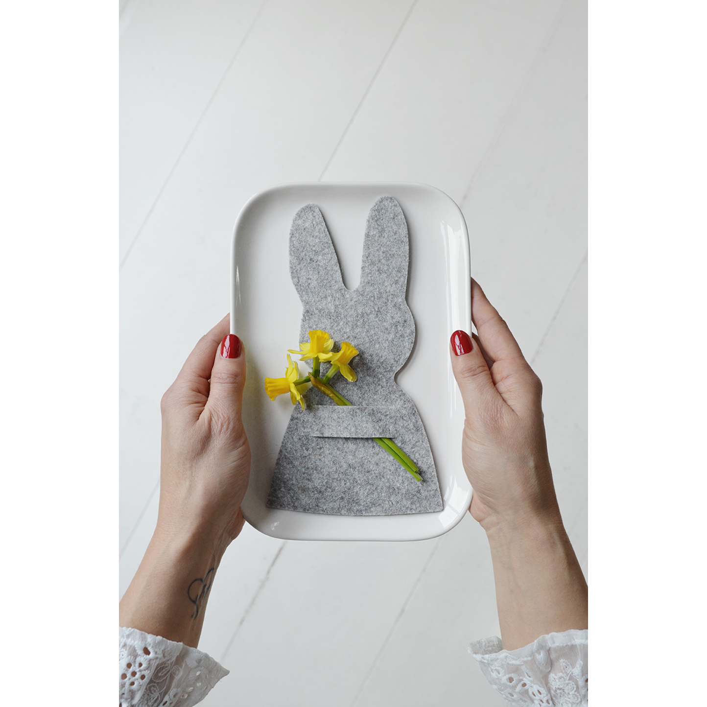 Für eine gemütliche Osterdekoration lässt sich der wunderschöne Filzhase mit weiteren Produkten der Design Marke Delight Department kombinieren.