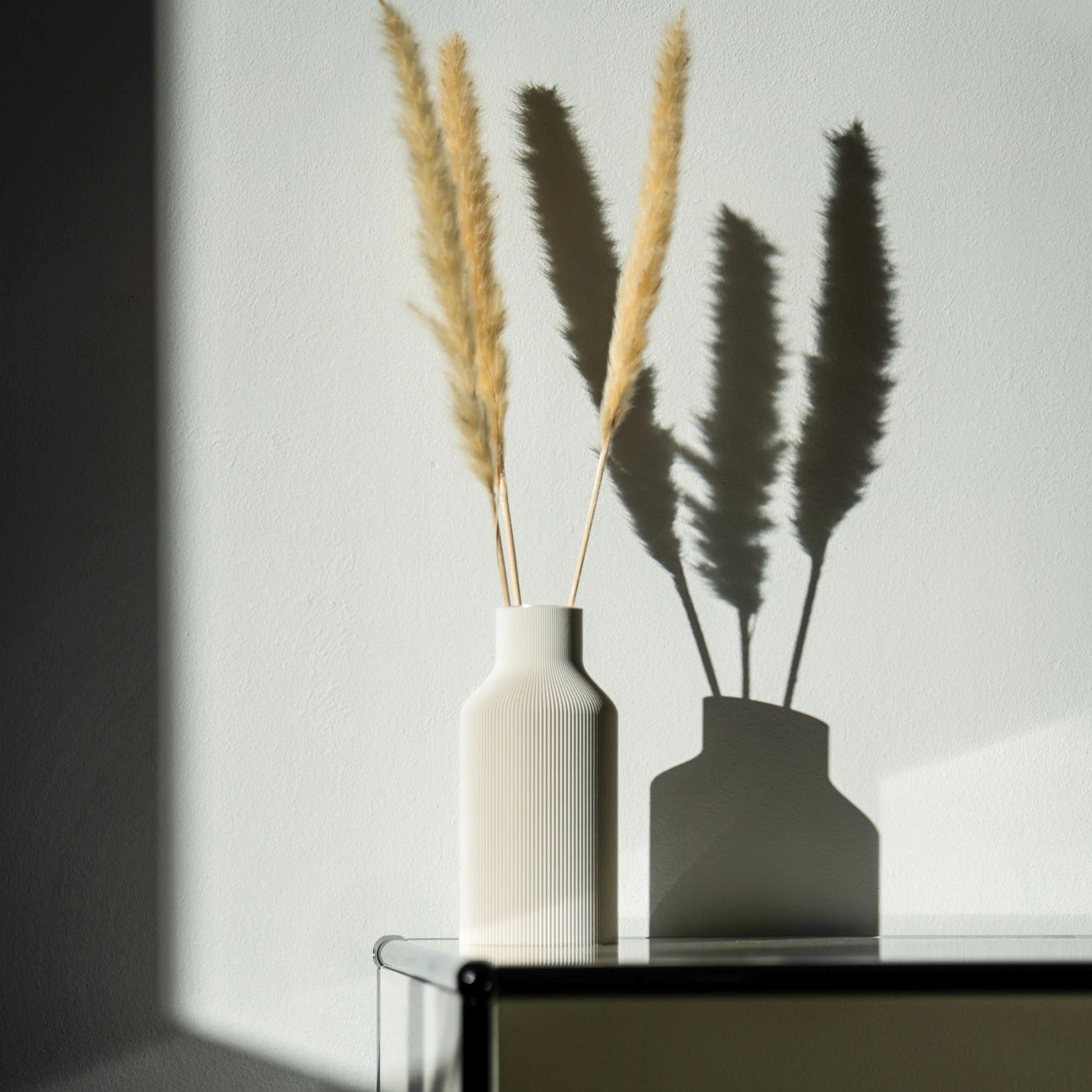 Die Blumenvase FLASCHE mit Rillendesign zeichnet sich durch ein eher weniger ausgefallenes, dafür aber maximal minimalistisches Design aus. Sie eignet sich hervorragend für frische und trockene Blumen oder als eigenständiges Dekorationsobjekt auf einem Couchtisch oder dem Sideboard, wo sie ihr volles dekoratives Potenzial entfalten kann.