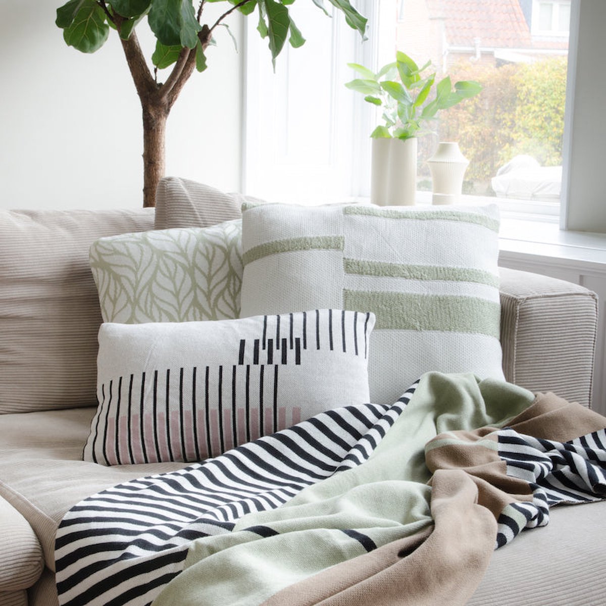 Dekoratives Kissen von der niederländischen Marke Home Delight für stilvolle Akzente in Wohn- und Schlafzimmer. Das gestrickte Kissen Gina verleiht deinem Zuhause eine individuelle Note und lässt sich perfekt mit einfarbigen oder gemusterten Kissen und Plaids kombinieren.