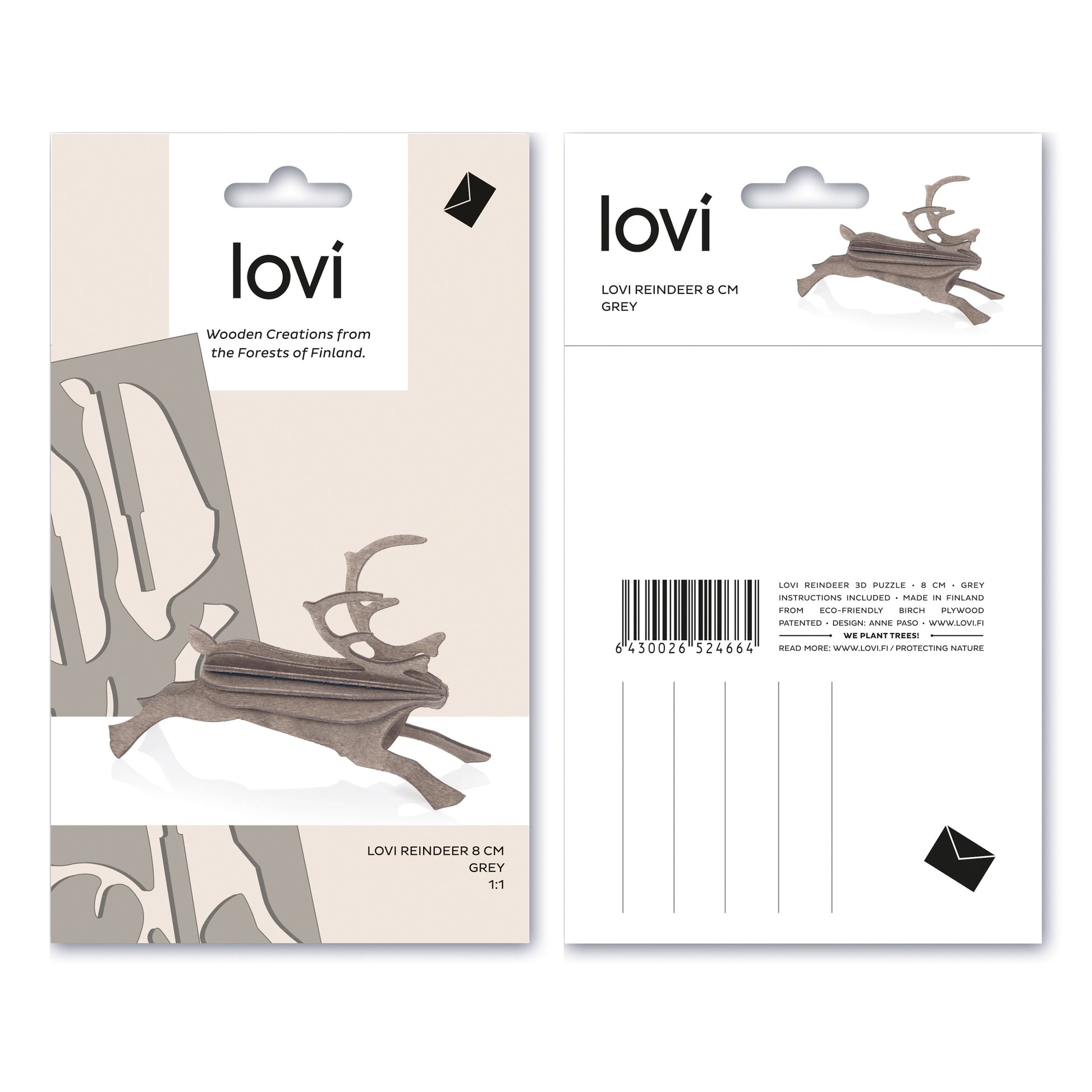 Lovi steht für liebevoll gestaltetes Holzdesign mit plastikfreier Verpackung. Die Holzfiguren bieten langanhaltende Freude und werden aus Birkensperrholz in Nordfinnland gefertigt. Der aus nachhaltiger Forstwirtschaft gewonnene Rohstoff stammt ausschließlich aus den Wäldern Finnlands.