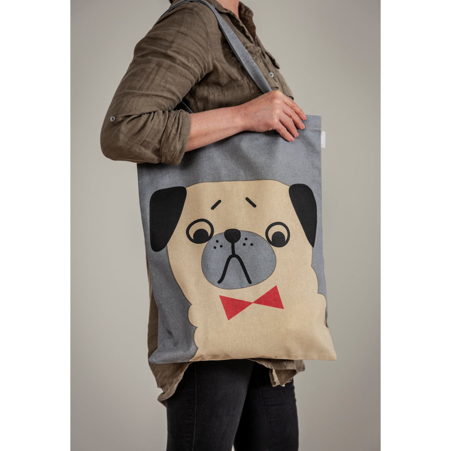 Die stabilen und platzsparenden Taschen aus natürlicher Baumwolle helfen dabei nachhaltig Plastikmüll zu vermeiden und sind handbedruckt, weshalb das schonende Waschen mit der Hand empfohlen wird.